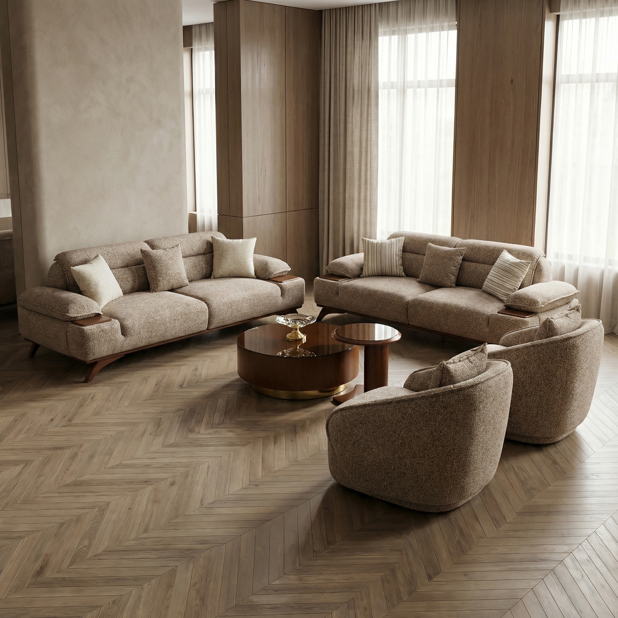 - يتميز طقم الأنتريه هذا بوجود كرسيين فوتيه دوّارين يدوران بزاوية 360 درجة.