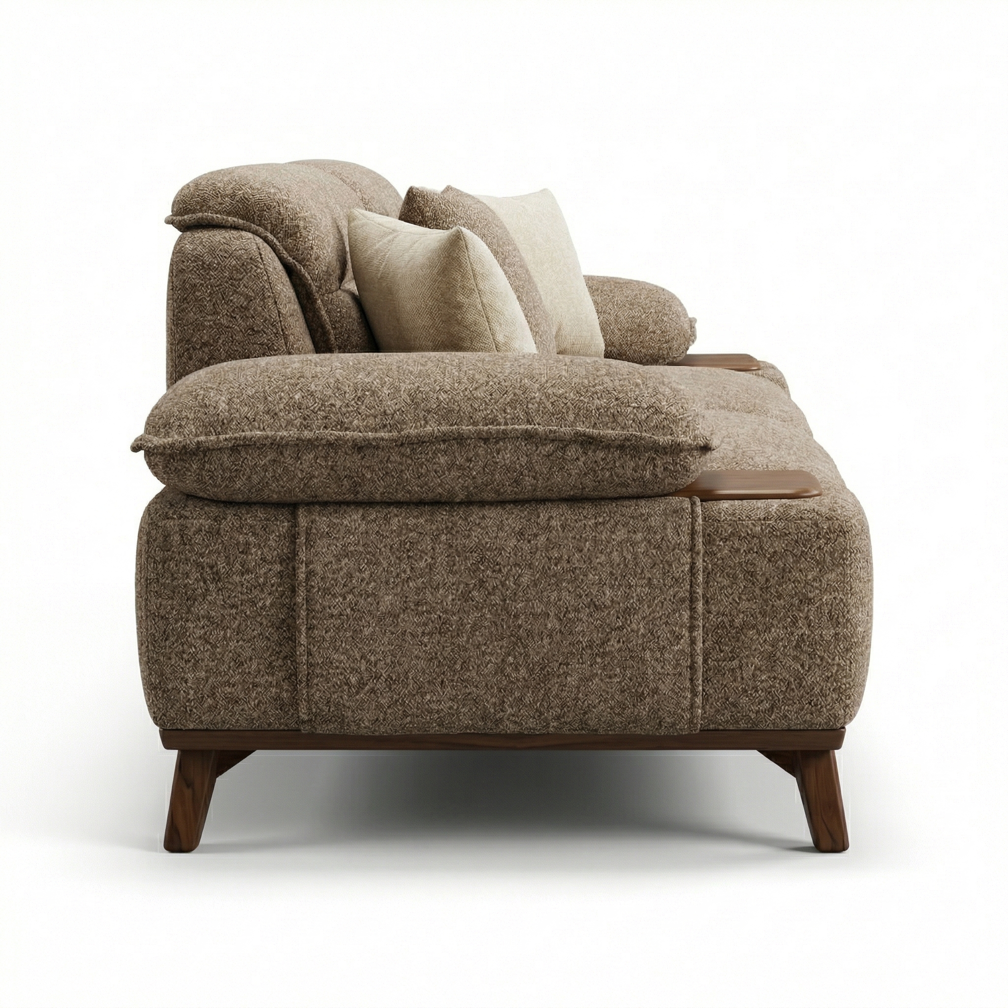 - كما يضم كنبتين مزودتين بآلية لإرجاع الظهر للخلف، ولكل كنبة مسندان جانبيان مريحان، ويسبقهما قاعدة خشبية صغيرة وأنيقة لوضع المتعلقات عليها، ككوب من الشاي أو كتاب للقراءة.